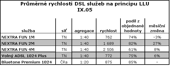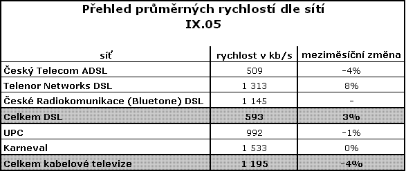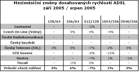 Rychlosti ADSL jsou v meziměsíčním porovnání již vcelku stabilní, což