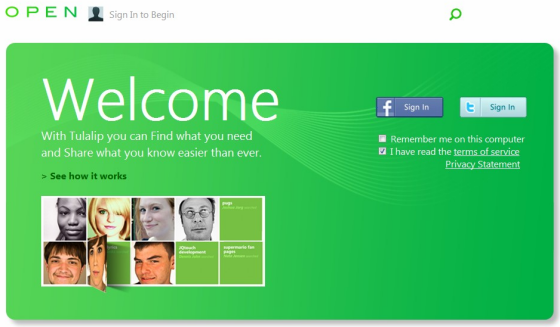 Sociální platforma Microsoftu (zatím) nese jméno Tulalip (dost kostrbaté). Firma na obrázku o ní říká "S Tulalip(em) můžete najít, co potřebujete, a sdílet, co víte, snadněji než kdykoli předtím." Za pozornost určitě stojí, že síť podporuje přihlášení přes účet Facebooku a/nebo Twitteru. Jestli Microsoft pracuje na jakési nadstavbě a možném synchronizačním mechanismu mezi těmito sítěmi, se však můžete teď opravdu jen dohadovat.