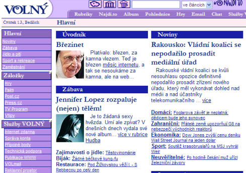 V roce 1996 všichni měli v oblíbených jen pár položek – FFFilm Františka Fuky, začínajícího Neviditelného psa Ondřeje Neffa, magazín Capitol s články o televizi, filmu a kultuře, vyhledávač Pinknet, Svět Namodro Daniela Dočekala, a od roku 1997 tehdy revoluční stránky České televize nejen s televizním programem...