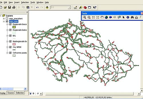 Přístup ke geodatům je také možný prostřednictvím GIS SW, například ArcMap firmy ESRI. Obrázek ukazuje zobrazení tzv. úses (územní systém ekologické stability krajiny). Nad daty je pak možné provádět prostorové analýzy a také je kombinovat s lokálními daty.