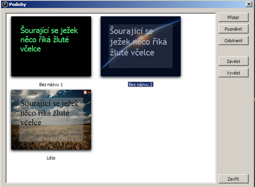 (Vzhled lze změnit jednoduše najetím kurzoru myši na horní hranu obrazovky, kdy se zobrazí nabídka: Nastavení -> Podoby. Menu programu není nikterak přeplácané a jednoduše se v něm orientuje, proto nějaké návody nechejme stranou.)