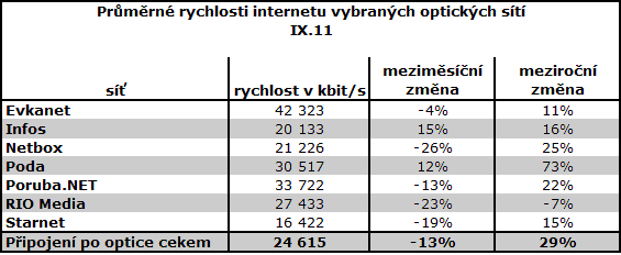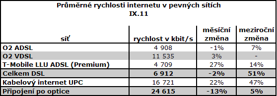 Zrychlení průměrné rychlosti UPC na rekordních 16,7 Mbit/s. Historicky nejvyšších rychlostí dosáhly i Vodafone 3G a VDSL 25 Mbit/s od O2.