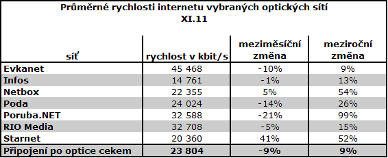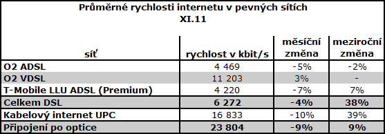 Průměrné rychlosti mobilního internetu poprvé přesáhly 1,5 Mbit/s. Výrazné zvýšení dosahovaných rychlostí v 3G síti T-Mobile na průměrných 3,5 Mbit/s. Stále velmi dobré rychlosti VDSL.