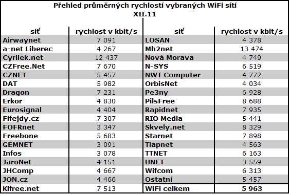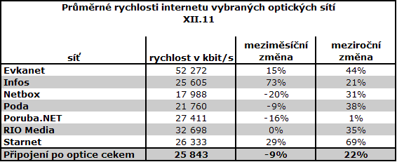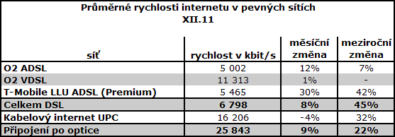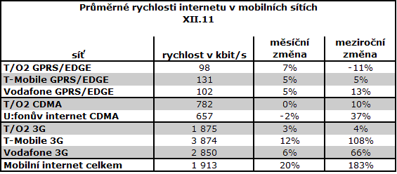 Mobilní internet konečně zaznamenává opravdový nástup. Pravděpodobně díky novým aktivacím telefonů s mobilním internetem hlavně u T-Mobile a Vodafonu došlo k velkému nárůstu počtu měření rychlostí mobilního internetu, kdy se průměrná rychlost poprvé přiblížila 2 Mbit/s. Dochází k postupnému zlepšování dosahovaných rychlostí u ADSL od O2.