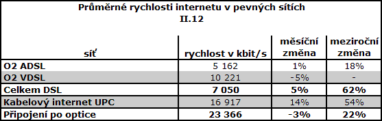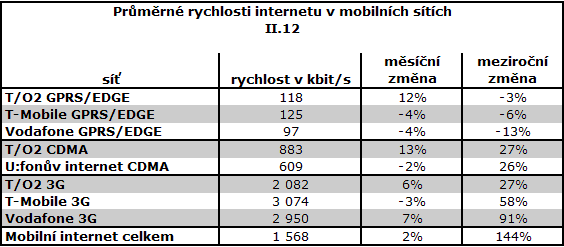 Rychlosti 3G sítě Vodafonu dotahují T-Mobile. Zrychluje i mobilní internet od O2 - 3G, GPRS/EDGE i CDMA. Po třech meziměsíčních poklesech zrychluje i kabelový internet od UPC.