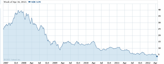 Pár Nokie promítnutý na vývoj akcií během posledních několika let