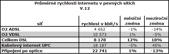 Pokračující zvyšování rychlosti 3G mobilního internetu od Vodafonu. Také DSL od O2 již čtvrtý měsíc za sebou zrychluje.