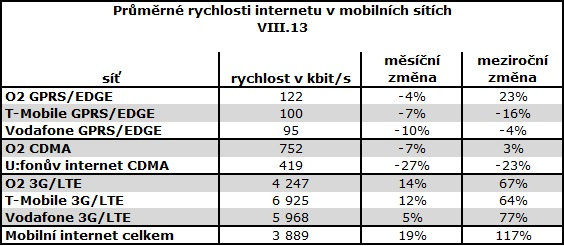 Rychlosti mobilního 3G internetu od O2 se zvyšují již desátý měsíc za sebou, ale na T-Mobile ani Vodafone rychlosti O2 stále nestačí. Podíl naměřených rychlostí z LTE sítí mobilních operátorů zatím nedosahuje ani 2%.