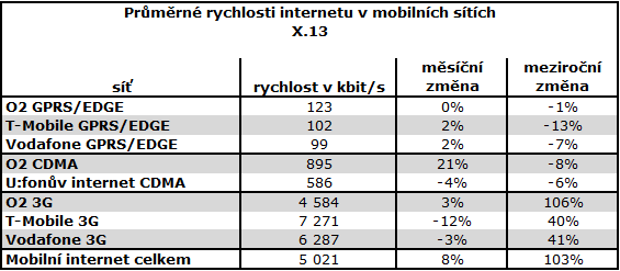 Do rychlostí 3G sítí nejsou zahrnovány měření ze sítí LTE z důvodu stále malého vzorku měření.