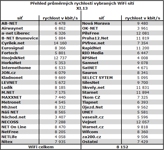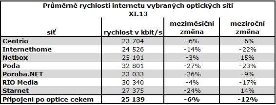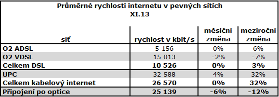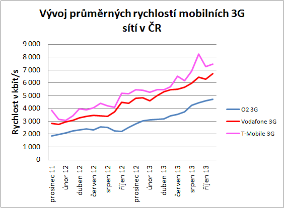 Historicky nejvyšší rychlosti UPC, které přesahují průměrné rychlosti mnoha poskytovatelů internetu přes optické přípojky. 3G síť T-Mobile zůstává nejrychlejší.