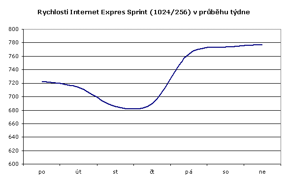 Na průměrné rychlosti ADSL v síti Českého Telecomu má podobně jako u jiných poskytovatelů výrazný vliv Fair Use Policy, která je aplikována v týdenním cyklu od pátku do čtvrtka. Názorně to ukazuje graf týdenního vývoje rychlostí služby Internet Expres Sprint s nominální rychlostí 1024 kbit/s. Pokud by z výsledků byla eliminována měření z přípojek s aplikovanou Fair Use Policy, byly by průměrné rychlosti o 5-10% vyšší.