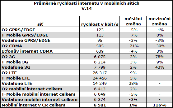 Rychlosti mobilního internetu jednotlivých operátorů v ČR se srovnaly. Rozdíly naměřených hodnot průměrných rychlostí jsou minimální. Nejrychlejší LTE má O2 a nejrychlejší 3G síť mají zákazníci Vodafonu.