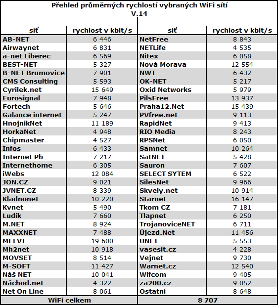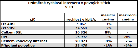 Uvedené rychlosti odpovídají naměřeným hodnotám dosaženým na měřáku internetové rychlosti serveru DSL.cz, mobilní aplikaci pro měření rychlosti v operačních systémech Android a iOS pro Apple iPhone a poskytnutým údajům o využívaných internetových službách ze strany uživatelů měřáku. Do vyhodnocených měření nejsou zahrnuta měření z IP rozsahů, které neodpovídají uživatelem vybranému poskytovateli a službě.