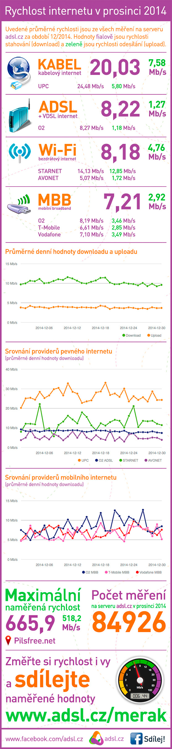Podle měření z webu ADSL.cz měl v prosinci 2014 nejrychlejší mobilní internet operátor O2. Naopak nejpomaleji se surfovalo v síti T-Mobile.