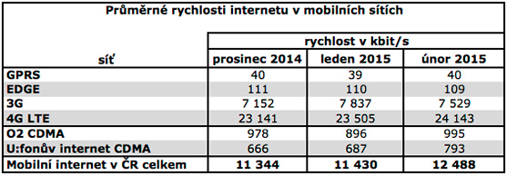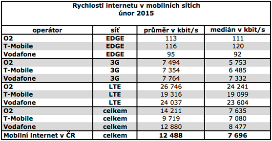 Uvedené rychlosti odpovídají naměřeným hodnotám dosaženým na měřáku internetové rychlosti serveru DSL.cz, mobilní aplikaci pro měření rychlosti v operačních systémech Android a iOS pro Apple iPhone a poskytnutým údajům o využívaných internetových službách ze strany uživatelů měřáku. Do vyhodnocených měření nejsou zahrnuta měření z IP rozsahů, které neodpovídají uživatelem vybranému poskytovateli a službě. V únoru 2015 jsme z mobilní aplikace naměřili přes 53 tisíc měření mobilního internetu od našich tří operátorů a přes 114 tisíc pevného připojení.