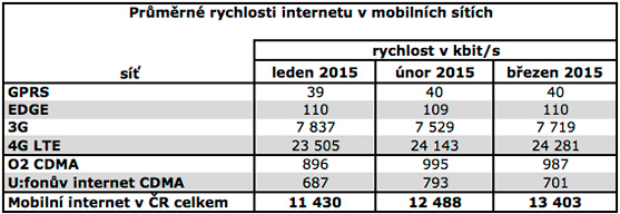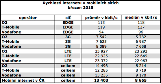 Uvedené rychlosti odpovídají naměřeným hodnotám dosaženým na měřáku internetové rychlosti serveru DSL.cz, mobilní aplikaci pro měření rychlosti v operačních systémech Android a iOS pro Apple iPhone a poskytnutým údajům o využívaných internetových službách ze strany uživatelů měřáku. Do vyhodnocených měření nejsou zahrnuta měření z IP rozsahů, které neodpovídají uživatelem vybranému poskytovateli a službě. V březnu 2015 jsme z mobilní aplikace naměřili přes 54 tisíc měření mobilního internetu od našich tří operátorů a přes 116 tisíc pevného připojení.