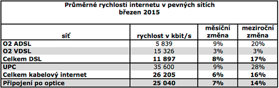Průměrná rychlost mobilního internetu opět stoupala. Nejrychlejší mobilní internet měl v březnu operátor O2. Pozitivně se vyvíjela rychlost internetu i u pevného připojení. Oproti minulému měsíci zrychlil DSL internet o 8%, Wi-Fi o 7% a kabelový o 6%.