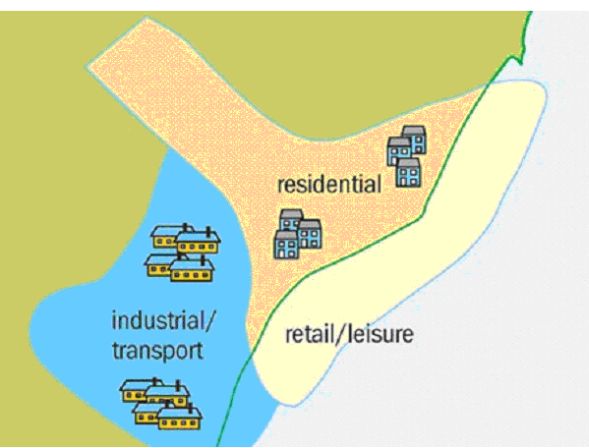 Různé typy bezdrátové komunikace se také různí podle místa, takže u potřebné spektrum závisí na konkrétní lokalitě. Městská aglomerace může být rozdělena do několika zón: průmyslová a transportní zóna; odpočinková zóna (restaurace, hotely, obchody); obytná zóna (domy, školy). Každá z těchto zón má jiné nároky na bezdrátovou komunikaci. Daly by se vytipovat i služby s rozdílnými požadavky na spektrum, které by se podle toho mohlo vyčlenit. Nicméně pokud by se používal stejný blok spektra v sousedních rádiových sítích, musel by se vyřešit vzájemné rušení.