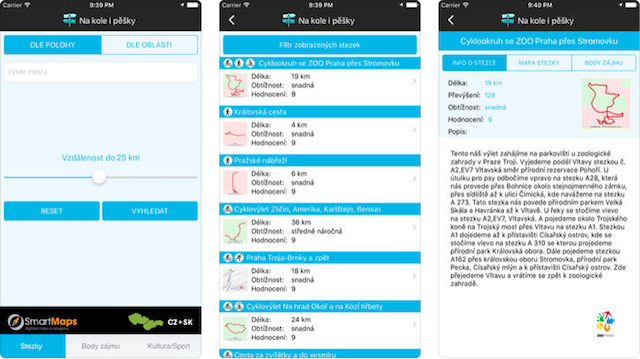 Jednoduchá appka, ve které najdete cyklostezky, stezky pro pěší, vodácké trasy, běžecké trasy i naučné stezky. U každého místa je taky popis, v němž uvidíte, kde se dá v okolí najíst, kde je galerie nebo muzeum, ale taky kde můžete přenocovat nebo se vykoupat. Obsahuje i mapu s nabídkou více tras. Aplikace Na kole i pěšky je k dispozici pro Android i iOS.