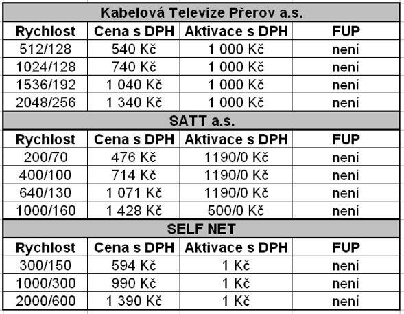 Jak vidno, malé firmy se v nabídce jen těžko vyrovnávají velkým společnostem. Z druhého pohledu ale lze říci, že v místech, kde je ADSL jen špatně dostupné, je i tato varianta zajímavá. Otázkou zůstává, kolik takových míst v ČR existuje. Nulová cena instalačního poplatku u společnosti SATT je platná pro zákazníky, kteří se zaváží na 24 měsíců k využívání služby.