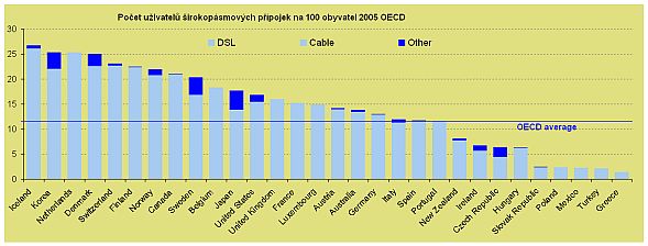 Ke konci roku 2005 v těchto 30 zemích bylo dohromady 158 milionů uživatelů širokopásmových přípojek, přičemž jen v druhé polovině loňského roku jich přibylo 22 milionů.