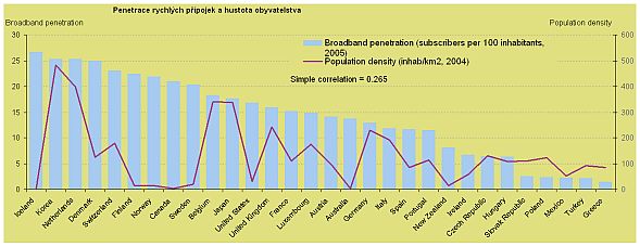 OECD porovnává jednotlivé země a jejich situaci s širokopásmovým přístupem k internetu s dalšími charakteristikami jako HDP (hrubý domácí produkt) nebo hustota obyvatel. Přímou souvislost ale nenachází ani v jednom z dalších sledovaných kritérií.