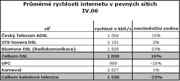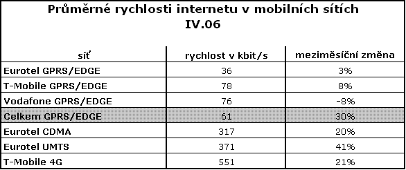 Posilování kapacit v přetížených oblastech CDMA sítě Eurotelu a spuštění HSDPA vedly k meziměsíčnímu zvýšení dosahovaných rychlostí internetu v mobilních sítích. K vzestupu rychlostí dochází za situace, kdy Eurotel i T-Mobile zaznamenávají zajímavý nárůst uživatelů mobilního internetu.