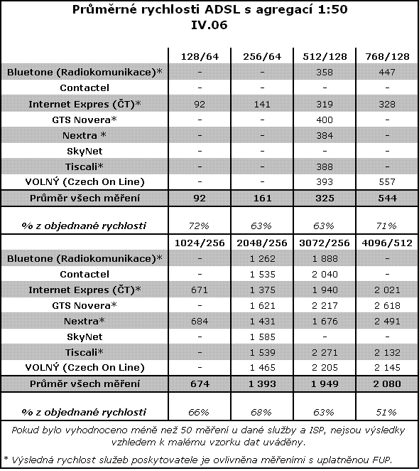 Poskytovatelům dnes zbývá již jen zanedbatelné množství zákazníků rušených služeb s rychlostmi 128, 256 a 1024 kbit/s, kterým nebyla rychlost navýšena. Důvodem jsou nejčastěji technické problémy, kdy kvalita linky zvýšení rychlosti neumožňuje. Od příštího měsíce nebudou uvedené rychlosti do tabulky zahrnovány.