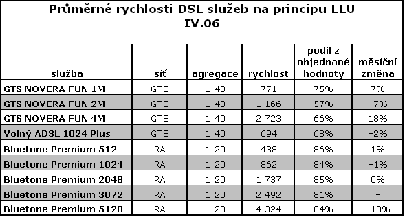 U rychlostí DSL služeb na principu LLU k žádným významným změnám nedošlo. Rychlosti v síti GTS jsou v porovnání s obdobnými službami Českého Telecomu o trochu vyšší a velmi dobrých rychlostí dosahují trvale Radiokomunikace.