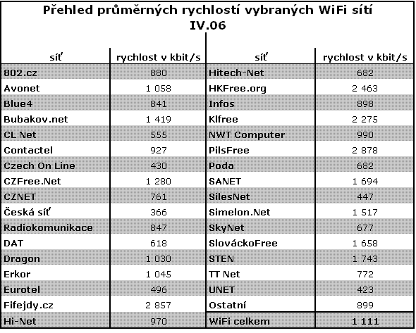 Průměrné naměřené hodnoty rychlostí z WiFi sítí poprvé přesáhly úrovně 1 Mbit/s. Předpokládám však, že tento údaj je významně ovlivněn tím, že častěji provádějí měření zákazníci s rychlejšími přípojkami.