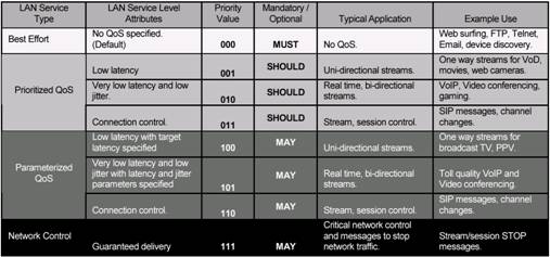 potenciální rozdělení na osm úrovní priorit (požadavky na QoS rostou v