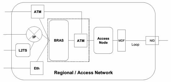 Obrázek: Přístupová síť s B-RAS podle TR-059