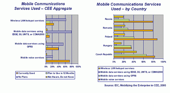 Příklon k mobilitě v podnikovém sektoru střední a východní Evropy dokreslují výsledky nedávné studie IDC („Mobilizing the enterprise in CEE“). Následující obrázek příliš komentář nepotřebuje – naše země si v tomto srovnání nevede vůbec špatně: