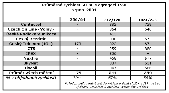 Změny dosahovaných rychlostí ADSL v srpnu oproti červenci jsou v této tabulce.