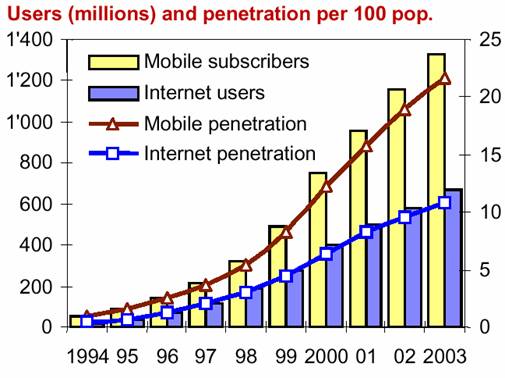 Zdroj: ITU V polovině letošního roku bylo ve světě 118 miliónů uživatelů mobilních