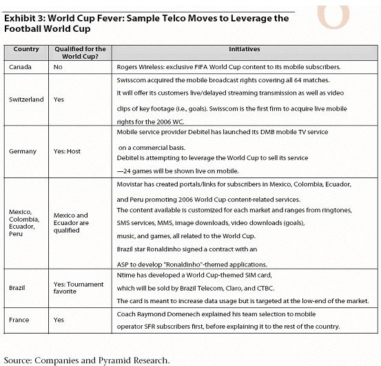 Podrobné výsledky z mobilní televizní události v Německu zatím nejsou k dispozici (dílčí pohled na aktivity telekomunikačních provozovatelů naznačuje tabulka), zato se již zveřejnily výsledky čtyř pilotních projektů, které zrealizovala Nokia.