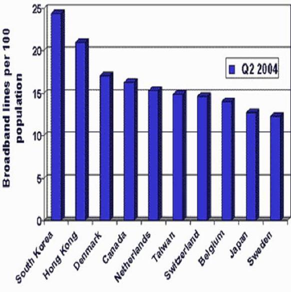 Korea, kde už každý čtvrtý obyvatel má širokopásmovou přípojku. Ale za