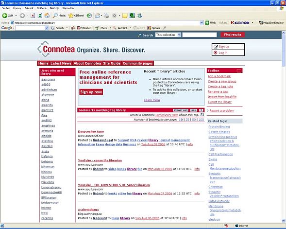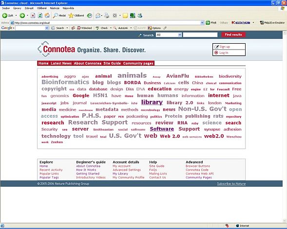 K důležitým prvkům současného rozvoje internetu patří společenské záložky. Během posledních let vznikla v této oblasti řada aktivit, mimo jiné Connotea zaštítěna prestižním vydavatelstvím Nature Publishing.
