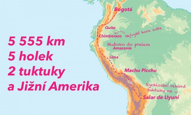 Nejdřív se musí holčičí výprava přesunout do Kolumbie, kde nakoupí tuk tuky, protože převoz by je stál tolik jako jedno vozítko. Pak zamíří k nejvyšší hoře na světě, dále do pralesa v Amazonii, do Limy, k Machu Picchu a pak zlomit rychlostní rekord k největší solné pláni Salar de Uyuni. Celkem to dělá 5 555 kilometrů.