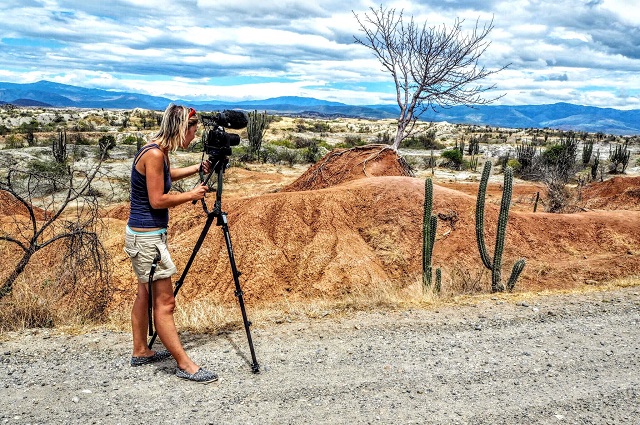 Máme s sebou jenom jeden stativ, který se střídáme s Eliškou, a to Manfrotto 190X. Používám ho jenom pokud se fotíme všechny nebo pro zachycení noční oblohy. Foťák chráním před nepříznivými podmínkami gumovým obalem, V poušti Tatacoa v Kolumbii jsem přišla na to, že před prachem chrání jen částečně. Není ani vodotěsný, nicméně při dešti zvládá svou funkci plnit skvěle.