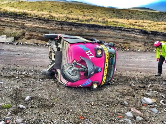 Tuktuky nejsou nejstabilnější, obzvlášť pokud jedou z kopečka. Pak je jde překlopit snadno! Ale holky tu situaci zvládly skvěle. K vrácení na všechna tři kolečka jim pomohla posádka auta, které si stoply. Druhá část party byla v tuto dobu na cestě na vrchol Cotopaxi a bohužel o nehodě nevěděla. Dozvěděly jsme se o ní až zpětně.