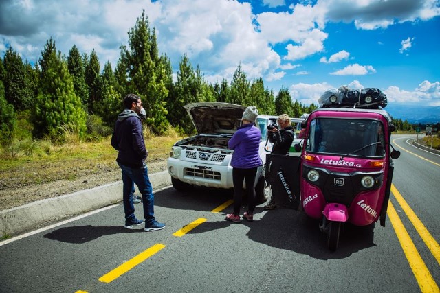 Jakmile holky překročily hranice Ekvádoru, stal se tuktuk zvaný Apéčko prokletým dopravním prostředkem. Neustále se opakující poruchy, především převodovky a startování, dohnaly holky dokonce k tomu, aby tuktuku nechaly nějakou dobu v servisu.