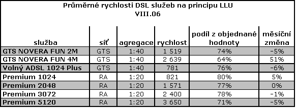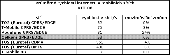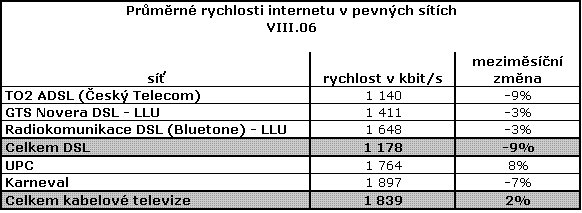 Za zmínku stojí i slušné rychlosti v síti CDMA TO2, které byly v srpnu druhé nejvyšší v historii. Bohužel však v porovnání s různými možnostmi pevného připojení k internetu, jejichž průměrné rychlosti se v poslední době zněkolikanásobily, rychlosti CDMA stále více zaostávají.