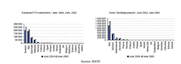 Počet uživatelů FTTx v Evropě se pohybuje kolem 650 tisíc (meziroční nárůst o 18 %), přičemž optika již dosahuje k 2,5 miliónům domácností (přírůstek 26 %). Ovšem 97 % všech uživatelů FTTx se nalézá pouze v pěti zemích: Švédsko, Itálie, Dánsko, Holandsko a Norsko. V ostatních zemích se teprve probouzejí k činnosti, takže alespoň bodují v procentuálním nárůstu počtu přípojek: např. Francie zaznamenala přírůstek 147 % v dostupnosti FTTx mezi domácnostmi (France Telecom zkouší PON, přestože populárnější je ethernet). Nově připojené země, včetně naší, nečiní ve statistice žádnou změnu k lepšímu výsledku.