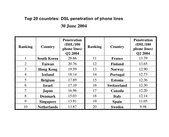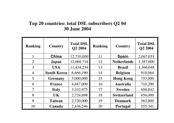 asijský region. Počtem přes 10 miliónů DSL přípojek se na světě mohou
