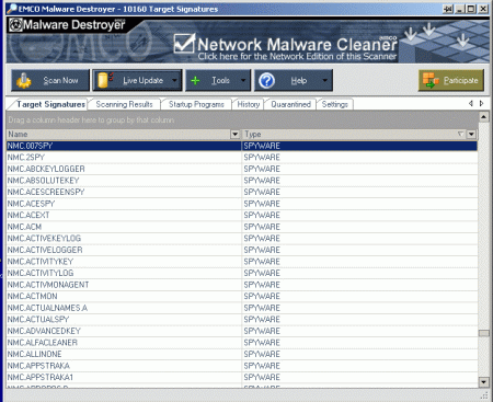 Méně známým programem, který je však velmi dobrý, je Malware Destroyer od firmy EMCO. Obsahuje přes 9000 definic malwaru, trojanů, adwaru, spawaru a dialerů. Na ovládání je velice jednoduchý, nastartujete jej opět jediným tlačítkem. Jde snad o nejrychlejší vyhledávač havěti — kritická místa prohledá během několika sekund.