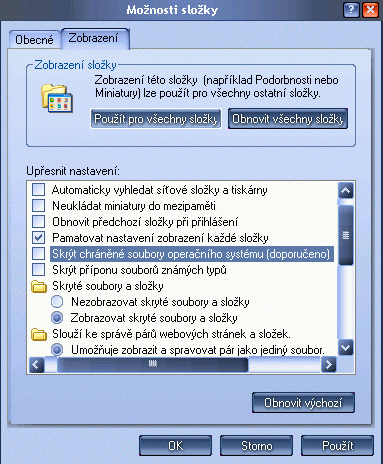 Povolení zobrazení chráněných souborů operačního systému