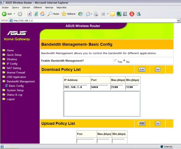 Bandwidth management poskytuje uživateli možnost definovat a garantovat pro určité služby dostatečné přenosové pásmo. Nejen tak, že můžete pro váš IP program (již v rámci WMM) rezervovat dostatečný datový tok, ale stejně tak je to možné například pro vaší oblíbenou hru. Pokud budete například nahrávat velký objem dat na váš FTP server, dostanou vybrané porty přednost. To zabrání trhání (lagům) způsobeným nižším pingem.