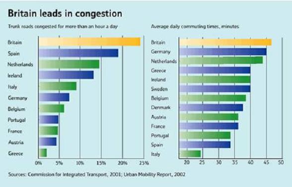 Britské Ministerstvo dopravy podle statistik tvrdí, že ze vzdálenosti najeté auty včetně taxi (81% veškeré dopravní výkonnosti co do ujetých vzdáleností) 59% tvoří právě dojíždění do práce (25%), pracovní cesty (15%), nákupy (12%) a vyřizování (7%). Desetiprocentní snížení by uspořilo ročně 14,5 miliard mil.