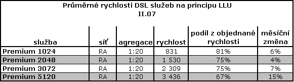 Do přehledu rychlostí v jednotlivých sítích byly nově přidány i naměřené rychlosti DSL přes LLU (DSL přes zpřístupněnou místní smyčku) v síti VOLNÝ, která hned poprvé dosáhla nejvyšších rychlostí ze všech sledovaných sítí. I když má síť VOLNÝ pokryto již přes 800 000 telefonních linek v ČR, je v počtu zákazníků, v porovnání s ostatními poskytovateli DSL přes LLU, nejmenší. Počet zákazníků sítě VOLNÝ však začne pravděpodobně velmi brzy rychle růst.